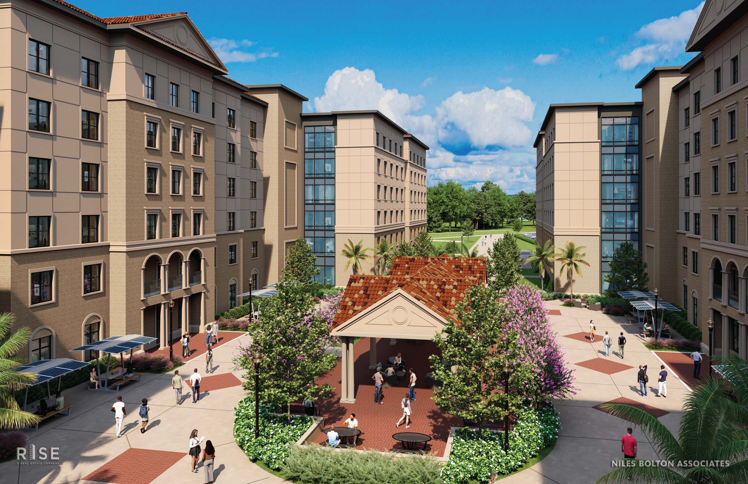 RISE Baymeadows is a 331-unit multifamily development in southeast Jacksonville, FL. The four-story, double donut garden-style apartment community offers studios, 1, 2, and 3-bedroom apartments outfitted with luxury features.